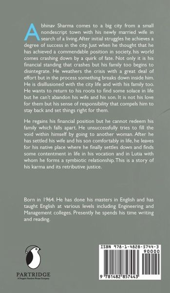 Abhinav Sharma comes to a big city from a small nondescript town with his newly married wife in search of a living. After initial struggles he achieves a degree of success in the city. Just when he thought that he has achieved a commendable position in society, his world comes crashing down by a quirk of fate. Not only it is his financial standing that crashes but his family too begins to disintegrate. He weathers the crisis with a great deal of effort but in the process something breaks down inside him. He is disillusioned with the city life and with his family too. He wants to return to his roots to find some solace in life but he can't abandon his wife and his son. It is not his love for them but his sense of responsibility that compels him to stay back and set things right for them. He regains his financial position but he cannot redeem his family which falls apart. He unsuccessfully tries to fill the void within himself by going to another woman. After he has settled his wife and his son comfortably in life, he leaves for his native place where he finally settles down and finds some contentment in life in his vocation and in Lutia with whom he forms a symbiotic relationship. This is a story of his karma and its retributive justice.