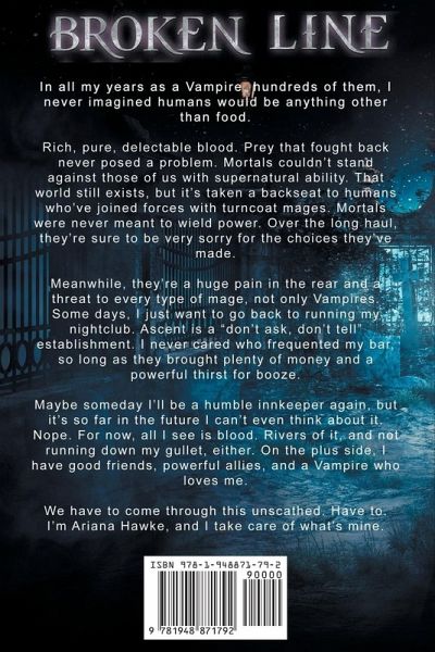 In all my years as a Vampire, hundreds of them, I never imagined humans would be anything other than food. Rich, pure, delectable blood. Prey that fought back never posed a problem. Mortals couldn't stand against those of us with supernatural ability. That world still exists, but it's taken a backseat to humans who've joined forces with turncoat mages. Mortals were never meant to wield power. Over the long haul, they're sure to be very sorry for the choices they've made. Meanwhile, they're a huge pain in the rear and a threat to every type of mage, not only Vampires. Some days, I just want to go back to running my nightclub. Ascent is a "don't ask, don't tell" establishment. I never cared who frequented my bar, so long as they brought plenty of money and a powerful thirst for booze. Maybe someday I'll be a humble innkeeper again, but it's so far in the future I can't even think about it. Nope. For now, all I see is blood. Rivers of it, and not running down my gullet, either. On the plus side, I have good friends, powerful allies, and a Vampire who loves me. We have to come through this unscathed. Have to. I'm Ariana Hawke, and I take care of what's mine.