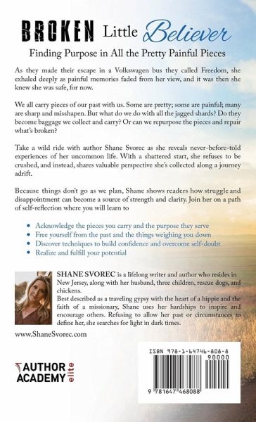Are you searching for greater perspective? Have you felt discouraged or uninspired in a world of instability and uncertainty? Have you lost hope in the face of difficult circumstances? Or maybe you just want to read an exciting and unforgettable tale based on a true story that will transform and transport you?Whatever you're looking for, this is an adventure that will open your eyes, touch your heart, and deepen your beliefs. Take a journey with author, Shane Svorec, as she invites readers to see the world through the back seat of a VW bus. Across the country and through the years, colorful experiences make up her transient upbringing where her empathetic spirit and perpetual optimism become the foundation for a life of adaptability, greater understanding, and never-ending wonder. A story about a girl who refuses to be a victim of her past or a product of her circumstances, Shane searches for purpose even in pain with a determined, but free spirit and shows others how to do the same. Creating a life out of overcoming the unthinkable, she dreams of a brighter future and envisions a world of possibilities as she stares out from the back seat of her family Volkswagen. The many "no-coincidence" connections she makes with others along the way, prove not only to be profound, but purposeful as well, while they unknowingly steer her onto the path she's meant to travel. These are the tales of the Broken Little Believer, the truth behind All the Pretty Painful Pieces, and the testimonies collected along the Path to Finding Purpose. Like going on a road trip with a good friend and a great playlist, this book weaves true stories into life lessons while entertaining and encouraging readers. In this book, readers will: *Discover how uncomfortable experiences can serve as opportunities for self-exploration and personal growth while creating a foundation for a healthy perspective and an attitude of gratitude. *Realize that to maintain hope, attract positivity, and fulfill one's purpose, it is necessary to implement pause, practice personal reflection, and routinely acknowledge the needs of our soul, while taking inventory of those who occupy our time and space. *Reveal a new (or greater) appreciation for their own journey as they recognize the value in painful lessons that serve to bring us closer to our purpose, and a life of peace and fulfillment. Beyond the journey, this book: *Features reasons to believe in the underdog while showcasing how false perceptions, widely held beliefs, and initial impressions are not only misleading but often wrong. *Provides a positive pathway to introduce, renew, and stretch that which we believe to be possible. *Creates a mindset of possibilities within readers as they learn to recognize blessings in disguise, further open their minds, deepen their understanding, and reach their potential in areas of their life where they've become stagnant, complacent, or resentful.