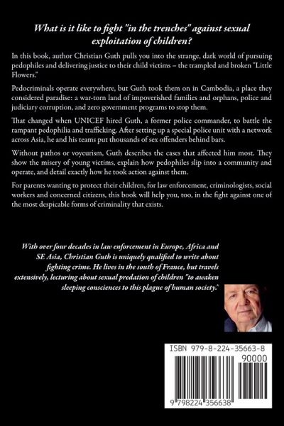Author Christian Guth pulls you into the strange, dark world of pursuing pedophiles and delivering justice to their child victims - the trampled and broken "Little Flowers." Pedocriminals operate around the globe, in our homes or on the streets, but Guth took them on in Cambodia, a place they thought was paradise: a war-torn land, impoverished families and orphans, police and judiciary corruption, and zero government programs to stop them. That changed in 2000, when UNICEF hired Guth, a former police commander working in the French embassy in Phnom Penh, to help battle the rampant pedophilia and trafficking. Guth set up a special police unit with a network across Cambodia and eventually beyond its borders. Overcoming nepotism, collaborators and other barriers, he helped put thousands of sex offenders behind bars. Without pathos or voyeurism, Guth writes of the cases that affected him most. Some show the misery their young victims faced, others illustrate how pedophiles slip into a community and operate. He also brings up NGOs, shadowy "adoption agencies," child labor and prostitution, but his focus is on pedocriminals and how he took action against them. For parents wanting to protect their children, for law enforcement, criminologists, social workers or simply concerned citizens, this book will help you, too, in the fight against one of the most despicable forms of criminality that exists.