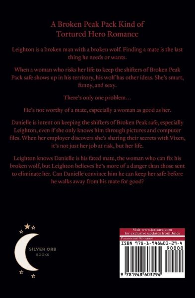 Leighton's a broken shifter with a past and Danielle's risking her life for his pack. But she's the true mate he doesn't deserve ... if she can convince him he can keep her safe. Leighton is a broken man with a broken wolf. Finding a mate is the last thing he needs or wants. When a woman who risks her life to keep the shifters of Broken Peak Pack safe shows up in his territory, his wolf has other ideas. She's smart, funny, and sexy. There's only one problem... He's not worthy of a mate, especially a woman as good as her. Danielle is intent on keeping the shifters of Broken Peak safe, especially Leighton, even if she only knows him through pictures and computer files. When her employer discovers she's sharing their secrets with Vixen, it's not just her job at risk, but her life. With the safety of Broken Peak Pack in the balance, destiny and love face the danger looming over them. Will Broken Peak lose its Mage and Leighton lose his mate? Or will Danielle's love for Leighton be enough to convince him he can keep her safe?