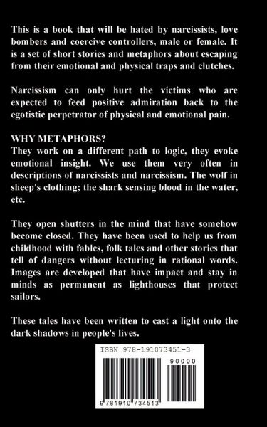 IF YOU, OR SOMEBODY YOU KNOW, HAS BEEN HURT BY A NARCISSIST, THEN THESE STORIES WILL MAKE YOU FEEL SO MUCH BETTER. The mirror is the narcissist's best friend because it reflects them. If it breaks, they are beaten. This is a set of short stories and metaphors about escaping from the narcissistic emotional and physical traps and clutches. Sometimes serious and at others light hearted, they tell how narcissists got their just deserts. They, of course, will hate the stories but anybody who has been the victim of those predators, male or female, will enjoy reading about how the cravers of admiration and the abusers of power met their true destiny. The author worked for many years as a therapist. He found that metaphors gave insights into the difficulties of people and showed the ways in which his clients could escape or improve. If the stories strike a chord, then they also show a way out. Metaphors open shutters in the mind that have somehow become closed. They have been used to help us from childhood with fables, folk tales and other stories that tell of dangers without lecturing in rational words. Images are developed that have impact and stay in minds as permanent as lighthouses that protect sailors. These tales have been written to cast a light onto the dark shadows in people's lives. Narcissism hurts the victims who are expected to feed positive admiration back to the egotistical perpetrators of physical and emotional pain. Remember, they are NOT after you for you. They want you for themselves.