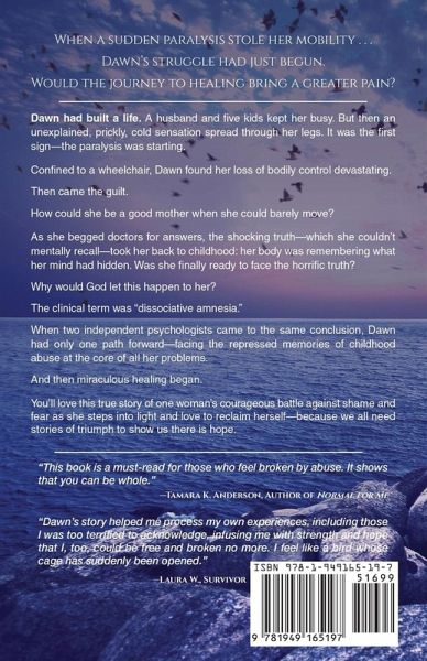 When a sudden paralysis stole her mobility, Dawn's struggle had just begun. Would the journey to healing bring a greater pain? Dawn had built a life. A husband and five kids kept her busy. But then an unexplained, prickly, cold sensation spread through her legs. It was the first sign-the paralysis was starting. Confined to a wheelchair, Dawn found her loss of bodily control devastating. Then came the guilt. How could she be a good mother when she could barely move? As she begged doctors for answers, the shocking truth-which she couldn't mentally recall-took her back to childhood: her body was remembering what her mind had hidden. Was she finally ready to face the horrific truth? Why would God let this happen to her? The clinical term was "dissociative amnesia." When two independent psychologists came to the same conclusion, Dawn had only one path forward-facing the repressed memories of childhood abuse at the core of all her problems. And then miraculous healing began. You'll love this true story of one woman's courageous battle against shame and fear as she steps into light and love to reclaim herself-because we all need stories of triumph to show us there is hope.