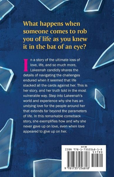 What happens when someone comes in to rob you of life as you knew it in the bat of an eye? In a story of ultimate loss of love, life and so much more, Lakeenah candidly shares the details of navigating the challenges endured when it seemed that life stacked all the cards against her. This is her story, her truth told in the most vulnerable way. Step into Lakeenah's world and experience why she has an undying love for the people around her that extends far beyond the parameters of life. In this remarkable comeback story, she exemplifies how and why she never gave up on love even when love appeared to give up on her.