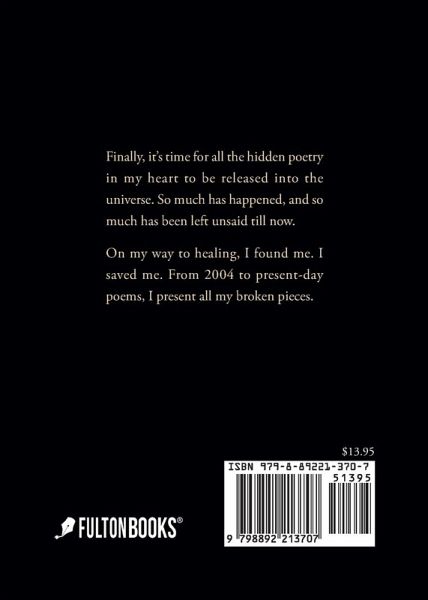 Finally, it's time for all the hidden poetry in my heart to be released into the universe. So much has happened, and so much has been left unsaid till now. On my way to healing, I found me. I saved me. From 2004 to present-day poems, I present all my broken pieces.