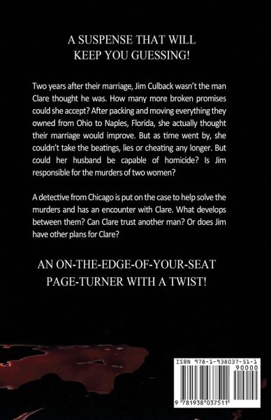 Two years after their marriage, Jim Culback wasn’t the man Clare thought he was. How many more broken promises could she accept? After packing and moving everything they owned from Ohio to Naples, Florida, she actually thought their marriage would improve. But as time went by, she couldn’t take the beatings, lies or cheating any longer. But could her husband be capable of homicide? Is Jim responsible for the murders of two women? A detective from Chicago is put on the case to help solve the murders and has an encounter with Clare. What develops between them? Can Clare trust another man? Or does Jim have other plans for Clare?