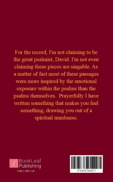 Broken Psalms is a short collection of pieces addressing hardship, disappointment, trust and the perceived uncertainty of hope.