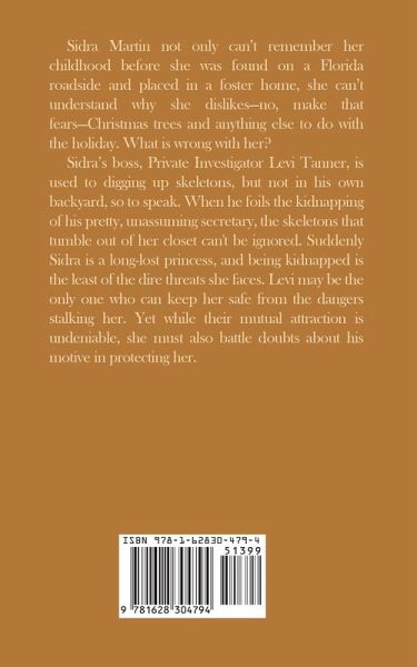 Sidra Martin not only can't remember her childhood before she was found on a Florida roadside and placed in a foster home, she can't understand why she dislikes-no, make that fears-Christmas trees and anything else to do with the holiday. What is wrong with her? Sidra's boss, Private Investigator Levi Tanner, is used to digging up skeletons, but not in his own backyard, so to speak. When he foils the kidnapping of his pretty, unassuming secretary, the skeletons that tumble out of her closet can't be ignored. Suddenly Sidra is a long-lost princess, and being kidnapped is the least of the dire threats she faces. Levi may be the only one who can keep her safe from the dangers stalking her. Yet while their mutual attraction is undeniable, she must also battle doubts about his motive in protecting her.