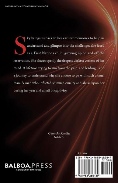 Sky brings us back to her earliest memories to help us understand and glimpse into the challenges she faced as a First Nations Child, growing up on then off the reservation. She shares openly the deepest darkest recesses of her mind. She spent a lifetime trying to run from the pain. She leads us on a journey to understand why she choose to go with such a cruel man. A man who would inflict so much abuse and cruelty in her year and a half of captivity.