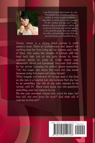 Unique James is a strong black woman in most people's eyes. She's an Entrepreneur and doesn't let anything stop her from living out her dreams...well most of them. She walks the streets of Harlem with her head held high, but as she gets closer to home, sadness starts to creep in. Home means pain, depression, abuse, and Emmanuel, the lover that waits for her arrival. Escaping his control seems impossible. Yet, the longer she stays, the more she dies inside because loving him means not loving herself. When tragedy and betrayal hit Unique dead in the face as she lies in a hospital bed, she believes that she has to do something. Her life at one point seemed to be normal, until Dr. Sharp came along, now she questions everything, even her reasons to live. No one ever promised Unique love would be easy, but how will she ever know for sure? And what will it cost her to find out?
