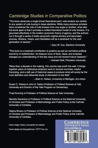 'This book advances a single broad theoretical point: vote brokers are central to any system of vote buying in mass elections. While many previous scholars have considered the role of vote brokers from one angle or another, what sets this book apart is that it provides a unified theoretical model of vote brokers. It is grounded effectively in the modern economic theory of agency, and the authors run it through a series of tests using both original primary and secondary sources. Brokers, Voters, and Clientelism will be a landmark for the next generation of studies.' Gary W. Cox, Stanford University
