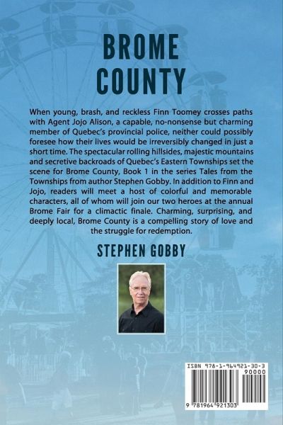 When young, brash, and reckless Finn Toomey crosses paths with Agent Jojo Alison, a capable, no-nonsense but charming member of Quebec's provincial police, neither could possibly foresee how their lives would be irreversibly changed in just a short time. The spectacular rolling hillsides, majestic mountains and secretive backroads of Quebec's Eastern Township set the scene for Brome County,Book 1 in the series Tales from the Townships from author Stephen Gobby. In addition to Finn and Jojo, readers will meet a host of colorful and memorable characters, all of whom will join our two heroes at the annual Brome Fair for a climactic finale. Charming, surprising, and deeply local, Brome County is a compelling story of love and the struggle for redemption.