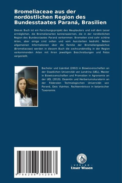 Dieses Buch ist ein Forschungsprojekt des Hauptautors und soll dem Leser ermöglichen, die Bromelienarten kennenzulernen, die in der nordöstlichen Region des Bundesstaates Paraná vorkommen. Bromelien sind sehr schöne Arten, aber einige sind selten und vom Aussterben bedroht. Neben allgemeinen Informationen über die Familie der Bromeliengewächse (Bromeliaceae) werden in diesem Buch die sechsunddreißig in der Region vorkommenden Arten mit ihren jeweiligen Beschreibungen und Fotos vorgestellt.
