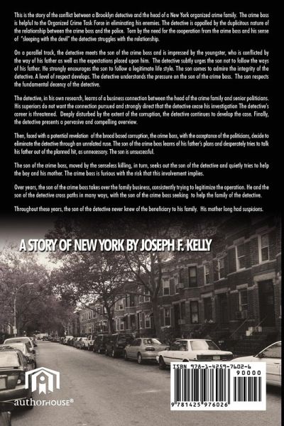 This is the story of the conflict between a Brooklyn detective and the head of a New York organized crime family. The crime boss is helpful to the Organized Crime Task Force in eliminating his enemies. The detective is appalled by the duplicitous nature of the relationship between the crime boss and the police. Torn by the need for the cooperation from the crime boss and his sense of "sleeping with the devil" the detective struggles with the relationship. On a parallel track, the detective meets the son of the crime boss and is impressed by the youngster, who is conflicted by the way of his father as well as the expectations placed upon him. The detective subtly urges the son not to follow the ways of his father. He strongly encourages the son to follow a legitimate life style. The son comes to admire the integrity of the detective. A level of respect develops. The detective understands the pressure on the son of the crime boss. The son respects the fundamental decency of the detective. The detective, in his own research, learns of a business connection between the head of the crime family and senior politicians. His superiors do not want the connection pursued and strongly direct that the detective cease his investigation The detective's career is threatened. Deeply disturbed by the extent of the corruption, the detective continues to develop the case. Finally, the detective presents a pervasive and compelling overview. Then, faced with a potential revelation of the broad based corruption, the crime boss, with the acceptance of the politicians, decide to eliminate the detective through an unrelated ruse. The son of the crime boss learns of his father's plans and desperately tries to talk his father out of the planned hit, as unnecessary. The son is unsuccessful. The son of the crime boss, moved by the senseless killing, in turn, seeks out the son of the detective and quietly tries to