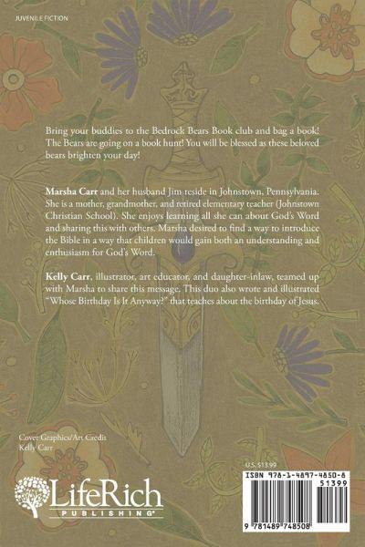 Bring your buddies to the Bedrock Bears Book club and bag a book! The Bears are going on a book hunt! You will be blessed as these beloved bears brighten your day!