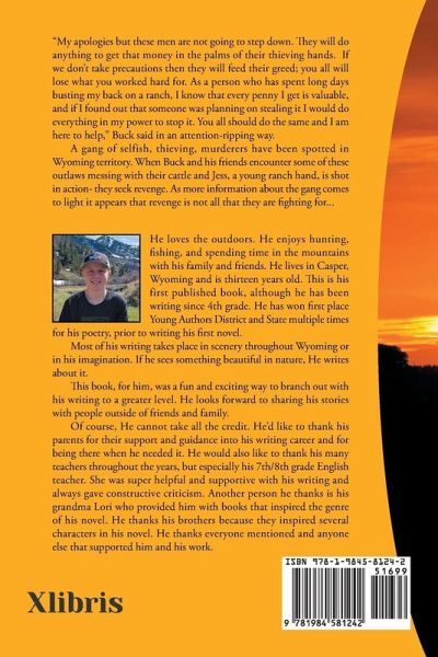 "My apologies but these men are not going to step down. They will do anything to get that money in the palms of their thieving hands. If we don't take precautions then they will feed their greed; you all will lose what you worked hard for. As a person who has spent long days busting my back on a ranch, I know that every penny I get is valuable, and if I found out that someone was planning on stealing it I would do everything in my power to stop it. You all should do the same and I am here to help," Buck said in an attention-ripping way. A gang of selfish, thieving, murderers have been spotted in Wyoming territory. When Buck and his friends encounter some of these outlaws messing with their cattle and Jess, a young ranch hand, is shot in action- they seek revenge. As more information about the gang comes to light it appears that revenge is not all that they are fighting for...