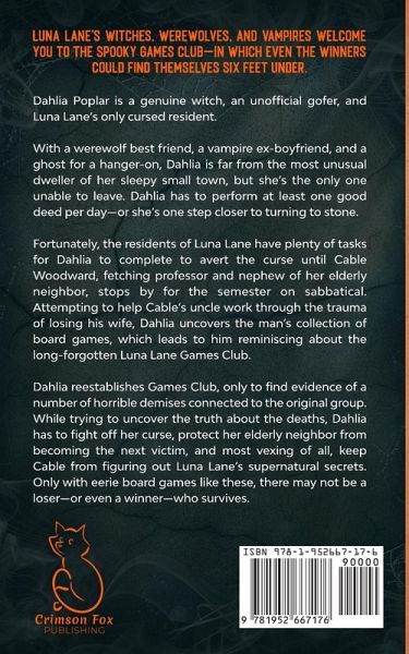 Dahlia Poplar is a genuine witch, an unofficial gofer, and Luna Lane's only cursed resident. With a werewolf best friend, a vampire ex-boyfriend, and a ghost for a hanger-on, Dahlia is far from the most unusual dweller of her sleepy small town, but she's the only one unable to leave. Dahlia has to perform at least one good deed per day-or she's one step closer to turning to stone. Fortunately, the residents of Luna Lane have plenty of tasks for Dahlia to complete to avert the curse until Cable Woodward, fetching professor and nephew of her elderly neighbor, stops by for the semester on sabbatical. Attempting to help Cable's uncle work through the trauma of losing his wife, Dahlia uncovers the man's collection of board games, which leads to him reminiscing about the long-forgotten Luna Lane Games Club. Dahlia reestablishes Games Club, only to find evidence of a number of horrible demises connected to the original group. While trying to uncover the truth about the deaths, Dahlia has to fight off her curse, protect her elderly neighbor from becoming the next victim, and most vexing of all, keep Cable from figuring out Luna Lane's supernatural secrets. Only with eerie board games like these, there may not be a loser-or even a winner-who survives.