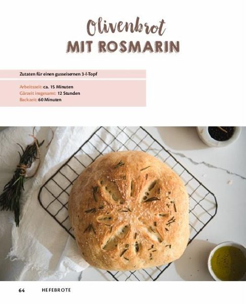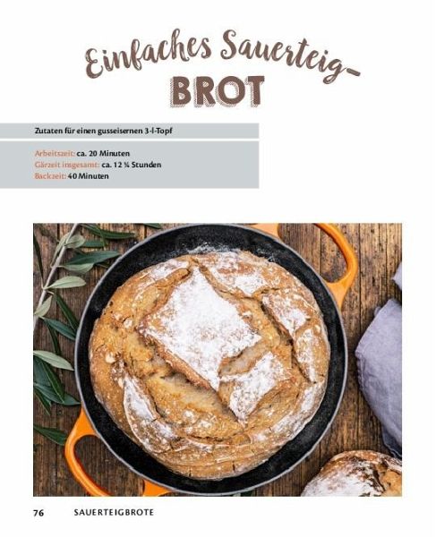 Aromatisch, kross und selbst gemacht! Brotbacken erlebt eine regelrechte Renaissance, viele Hobbybäckerinnen und -bäcker wagen sich ans Mehl, probieren aus und pflegen ihren selbstgezüchteten Sauerteig. Wer die Kruste annähernd so knusprig, die Krume so elastisch hinbekommen möchte wie der Bäcker des Vertrauens, landet früher oder später beim Gusstopf. Hier hat der Teig die idealen Voraussetzungen, um als perfektes Brot aus dem heimischen Ofen zu kommen. Ganz gleich, ob Hefe- oder Sauerteig, herzhafte oder süße Brote - im Gusstopf gelingt alles!Gabriele Rosenbaum hat eine Vielzahl an Rezepten für den Gusstopf ausprobiert, perfektioniert und die besten für dieses Buch zusammengestellt. Neben Rezeptideen für die verschiedensten Anlässe zeigt Gabriele Rosenbaum auch, welches Zubehör man braucht, welche Falttechniken es gibt und auf was man beim Ansetzen des eigenen Sauerteigs achten muss.Nach der Einführung mit einer Schritt-für-Schritt-Anleitung und anschaulichen Fotos zum Kneten, Falten und Forme der Teige folgt der Hauptteil des Buches mit rund 50 köstlichen Brot-Rezepten, allesamt bebildert mit tollen Fotos., Ob Dinkel-Feigen-Brot, Kartoffel-Speck-Brot, Zucchini-Roggenbrot, Pinza, Panettone oder Brioche - am liebsten möchte man alle Rezepte sofort ausprobieren. So einfach und gelingsicher war Brotbacken noch nie! Mit diesen Rezepten und einem gusseisernen Topf kommen auch Backanfänger zum köstlichen selbstgemachten Brot. Also - Ran an den Topf!