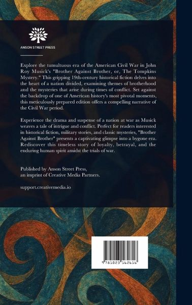 Explore the tumultuous era of the American Civil War in John Roy Musick's "Brother Against Brother, or, The Tompkins Mystery." This gripping 19th-century historical fiction delves into the heart of a nation divided, examining themes of brotherhood and the mysteries that arise during times of conflict. Set against the backdrop of one of American history's most pivotal moments, this meticulously prepared edition offers a compelling narrative of the Civil War period. Experience the drama and suspense of a nation at war as Musick weaves a tale of intrigue and conflict. Perfect for readers interested in historical fiction, military stories, and classic mysteries, "Brother Against Brother" presents a captivating glimpse into a bygone era. Rediscover this timeless story of loyalty, betrayal, and the enduring human spirit amidst the trials of war. This work has been selected by scholars as being culturally important, and is part of the knowledge base of civilization as we know it. This work is in the public domain in the United States of America, and possibly other nations. Within the United States, you may freely copy and distribute this work, as no entity (individual or corporate) has a copyright on the body of the work. Scholars believe, and we concur, that this work is important enough to be preserved, reproduced, and made generally available to the public. We appreciate your support of the preservation process, and thank you for being an important part of keeping this knowledge alive and relevant.