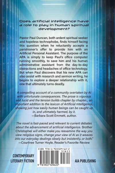 Does artificial intelligence have a role to play in human spiritual development? Pastor Paul Duncan, both ardent spiritual seeker and hopeless technophobe, finds himself facing this question when he reluctantly accepts a parishioner's offer to provide him with an Artificial Personal Assistant. The initial purpose of the APA is simply to keep Paul's office computer running smoothly, to save him and his human administrative assistant from the day-to-day distractions and headaches of office technology. But when Paul discovers that his new APA can also assist with research and sermon writing, he begins to explore a deeper relationship with it, one that ultimately turns deadly.