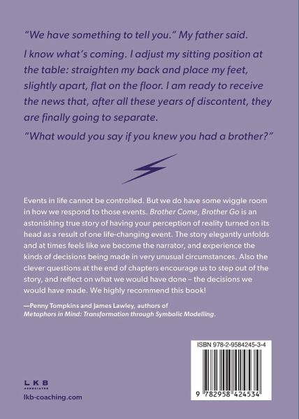 Get ready for a journey filled with emotional decisions and life-changing events. Brother Come, Brother Go is a powerful and captivating true story about how a family is brought together when a forty-three year family secret is revealed with the unexpected appearance of one of its members. Through the eyes of the author, you will witness the love and joy, heartbreaking turmoil and difficult decisions made in the aftermath. But this book is more than just a story - the author hopes you join the healing through thought-provoking questions at the end of each chapter to help you reflect on your own choices and circumstances. Discover the strength and resilience that can be found in the face of unexpected events, and witness the unbreakable bonds of family. What to expect from this book:- A shocking and heartfelt true story of a family's journey through an unexpected event- Thought-provoking questions at the end of each chapter to help you reflect on your own life- An exploration of the strength and resilience of the human spirit- A reflection on the unbreakable bonds of family and their enduring power Brother Come, Brother Go is a must-read gripping and thought-provoking story that will resonate with anyone who has experienced the unexpected twists and turns of life.