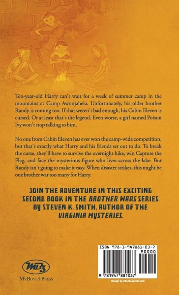 Ten-year-old Harry can’t wait for a week of summer camp in the mountains at Camp Awonjahela. Unfortunately, his older brother Randy is coming too. If that weren’t bad enough, his Cabin Eleven is cursed. Or at least that’s the legend. Even worse, a girl named Poison Ivy won’t stop talking to him. No one from Cabin Eleven has ever won the camp-wide competition, but that’s exactly what Harry and his friends set out to do. To break the curse, they’ll have to survive the overnight hike, win Capture the Flag, and face the mysterious figure who lives across the lake. But Randy isn’t going to make it easy. When disaster strikes, this might be one brother war too many for Harry. Join the adventure in this exciting second book in the Brother Wars series by Steven K. Smith, author of The Virginia Mysteries.