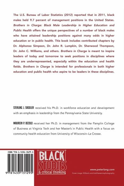 The U.S. Bureau of Labor Statistics (2012) reported that in 2011, black males held 9.7 percent of management positions in the United States. Brothers in Charge: Black Male Leadership in Higher Education and Public Health offers the unique perspectives of a number of black males who have attained leadership positions against many odds in higher education or in public health. This book includes contributed chapters by Dr. Alphonso Simpson, Dr. John R. Lumpkin, Dr. Sherwood Thompson, Dr. John C. Williams, and others. Brothers in Charge is meant to inspire leaders of today and tomorrow to seek positions in disciplines where they are underrepresented, especially within the education and health fields. Brothers in Charge is intended for professionals in both higher education and public health who aspire to be leaders in these disciplines.