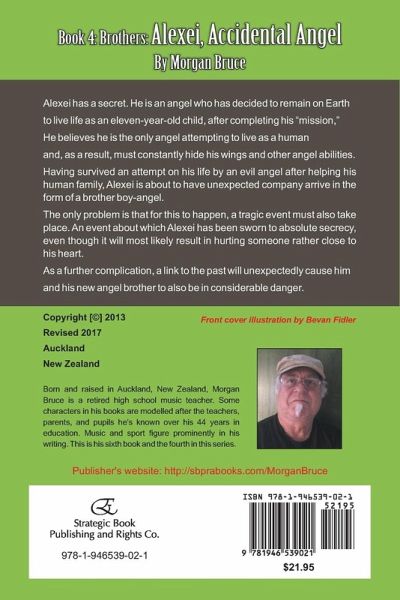 Alexei has a secret. He is an angel who has decided to remain on Earth to live life as an eleven-year-old child, after completing his "mission." He believes he is the only angel attempting to live as a human and, as a result, must constantly hide his wings and other angel abilities. Having survived an attempt on his life by an evil angel after helping his human family, Alexei is about to have unexpected company arrive in the form of a brother boy-angel. The only problem is that for this to happen, a tragic event must also take place. An event about which Alexei has been sworn to absolute secrecy, even though it will most likely result in hurting someone rather close to his heart. As a further complication, a link to the past will unexpectedly cause him and his new angel brother to also be in considerable danger. Born and raised in Auckland, New Zealand, Morgan Bruce is a retired high school music teacher. Some characters in his books are modelled after the teachers, parents, and pupils he's known over his 44 years in education. Music and sport figure prominently in his writing. This is his sixth book and the fourth in this series. Publisher's website: http://sbprabooks.com/MorganBruce