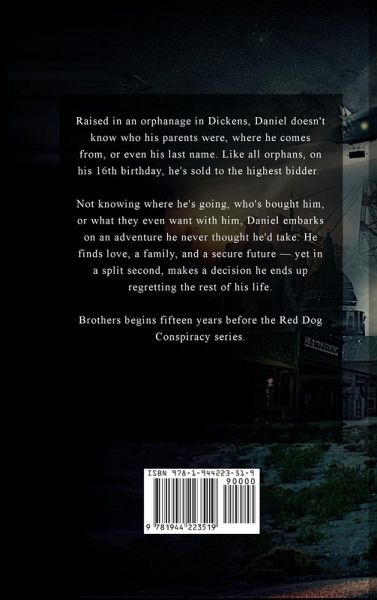 A young man sold into servitude has his loyalties tested in ways he never imagined. Raised in an orphanage in Dickens, Daniel doesn't know who his parents were, where he comes from, or even his last name. Like all orphans, on his 16th birthday, he's sold to the highest bidder. Not knowing where he's going, who's bought him, or what they even want with him, Daniel embarks on an adventure he never thought he'd take. He finds love, a family, and a secure future - yet in a split second, makes a decision he ends up regretting the rest of his life. Brothers begins fifteen years before the Red Dog Conspiracy series. Warning: Language, smoking, use of alcohol and drugs, attempted suicide by hanging, M/M underage sexuality with consent issues, forced servitude, blood, gun violence, a man being beaten by a horsewhip, murder, discussion of child prostitution, underage M/F sexuality with age gap (female older).