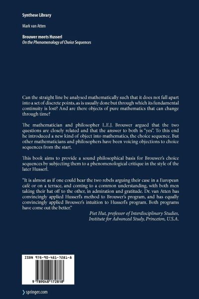 From the reviews: "It is almost as if one could hear the two rebels arguing their case in a European café or on a terrace, and coming to a common understanding, with both men taking their hat off to the other, in admiration and gratitude. Dr. van Atten has convincingly applied Husserl's method to Brouwer's program, and has equally convincingly applied Brouwer's intuition to Husserl's program. Both programs have come out the better." Piet Hut, Professor of Interdisciplinary Studies, Institute for Advanced Study, Princeton, USA