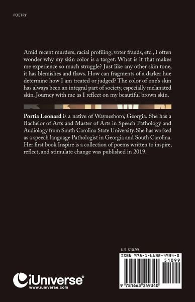 This book is a compilation of poems written to reflect the diverse experiences of people with melanated skin. As I witnessed resurfacing historical wounds of racism, bigotry, and social unrest, I was prompted to write poems that focused on how we managed to thrive and survive against all odds.