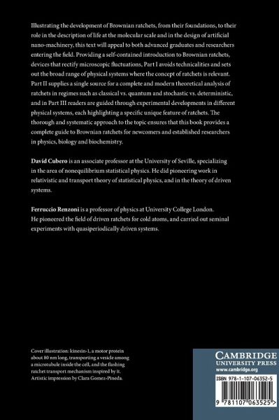 Illustrating the development of Brownian ratchets, from their foundations, to their role in the description of life at the molecular scale and in the design of artificial nano-machinery, this text will appeal to both advanced graduates and researchers entering the field. Providing a self-contained introduction to Brownian ratchets, devices which rectify microscopic fluctuations, Part I avoids technicalities and sets out the broad range of physical systems where the concept of ratchets is relevant. Part II supplies a single source for a complete and modern theoretical analysis of ratchets in regimes such as classical vs quantum and stochastic vs deterministic, and in Part III readers are guided through experimental developments in different physical systems, each highlighting a specific unique feature of ratchets. The thorough and systematic approach to the topic ensures that this book provides a complete guide to Brownian ratchets for newcomers and established researchers in physics, biology and biochemistry.