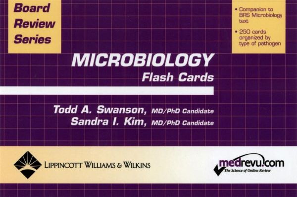 This set of 250 double-sided cards is intended to accompany Johnson's BRS Microbiology and Immunology 4E. The cards consist of a straightforward series of questions and answers intended to help students enrolled in basic science courses and studying for USMLE Step One. Utilizing a short phrase that triggers the recall of an answer, each card asks students to commit a key point to memory before moving on to the next card. In addition they offer a unique advantage to the student by emphasizing the important details, rather than giving equal weight to all information about an organism.