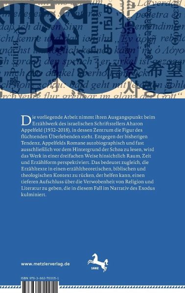 Die vorliegende Arbeit nimmt ihren Ausgangspunkt beim Erzählwerk des israelischen Schriftstellers Aharon Appelfeld (1932-2018), in dessen Zentrum die Figur des flüchtenden Überlebenden steht. Entgegen der bisherigen Tendenz, Appelfelds Romane autobiographisch und fast ausschließlich vor dem Hintergrund der Schoa zu lesen, wird das Werk in einer dreifachen Weise hinsichtlich Raum, Zeit und Erzählform perspektiviert. Das bedeutet zugleich, die Erzähltexte in einen erzähltheoretischen, biblischen und theologischen Kontext zu rücken, der helfen kann, einen tieferen Aufschluss über die Verwobenheit von Religion und Literatur zu geben, die in diesem Fall im Narrativ des Exodus kulminiert.