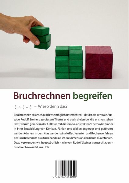 1/4 : 1/2 = 1/2 - Wieso denn das? Bruchrechen so anschaulich wie möglich unterrichten - das ist die zentrale Aussage Rudolf Steiners zu diesem Thema und auch diejenige, die uns verstehen lässt, warum gerade in der 4. Klasse mit diesem so "abstrakten" Thema die Kinder in ihrer Entwicklung von Denken, Fühlen und Wollen angeregt und gefördert werden können. In dem Kurs werden wir alle Rechenarten und Rechenverfahren des Bruchrechnens praktisch handelnd im dreidimensionalen Raum durchführen. Dazu verwenden wir hauptsächlich Bruchrechenwürfel aus Holz.