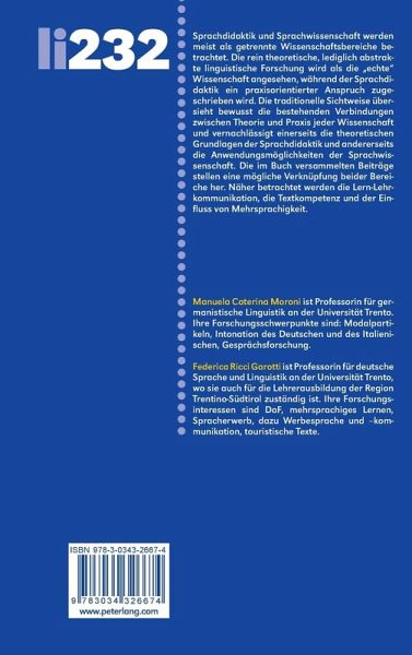 Sprachdidaktik und Sprachwissenschaft werden meist als getrennte Wissenschaftsbereiche betrachtet. Die rein theoretische, lediglich abstrakte linguistische Forschung wird als die «echte» Wissenschaft angesehen, während der Sprachdidaktik ein praxisorientierter Anspruch zugeschrieben wird. Die traditionelle Sichtweise übersieht bewusst die bestehenden Verbindungen zwischen Theorie und Praxis jeder Wissenschaft und vernachlässigt einerseits die theoretischen Grundlagen der Sprachdidaktik und andererseits die Anwendungsmöglichkeiten der Sprachwissenschaft. Die im Buch versammelten Beiträge stellen eine mögliche Verknüpfung beider Bereiche her. Näher betrachtet werden die Lern-Lehrkommunikation, die Textkompetenz und der Einfluss von Mehrsprachigkeit.