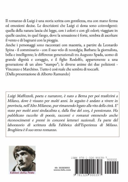Primo classificato "Trofeo Monterosi d'Argento 2018" Il corpo di una giovane donna viene trovato in un canale. Viene individuato un colpevole, ma il commissario Spina non è convinto della sua colpevolezza e continua ad indagare con l'aiuto prezioso di Barbara R. giornalista free-lance. La verità riaffiorerà e sarà amara. Un'indagine tra la brughiera lombarda, i vecchi agglomerati industriali, le nuove mafie e la drammatica situazione dei profughi africani. Dalla prefazione di Alberto Ramundo: Il romanzo di Luigi è una storia scritta con gentilezza, ma con mano ferma ed emozioni decise. Le descrizioni che Luigi ci dona sono coinvolgenti: quella della natura lascia chi legge, con i colori e con gli odori; viaggiare in quelle cascine, in quel fango, dove la sensazione è forte, sembra di ascoltare il vento e di bagnarsi con la pioggia. Anche i personaggi sono raccontati con maestria, a partire da Leonardo Spina - il commissario - con il suo velo di nostalgia e Barbara: la giornalista, bella e intelligente.