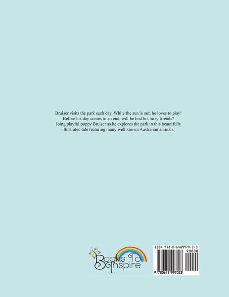 Bruiser visits the park each day. While the sun is out, he loves to play! Before his day comes to an end, will he find his furry friends? Join playful puppy Bruiser as he explores the park in this beautifully illustrated tale featuring many well known Australian animals.