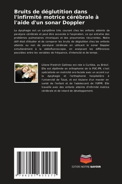 La dysphagie est un symptôme très courant chez les enfants atteints de paralysie cérébrale et peut être associée à l'aspiration, ce qui entraîne des problèmes pulmonaires chroniques et des pneumonies récurrentes. Notre défi était d'étudier et de comparer les bruits de déglutition chez les enfants atteints ou non de paralysie cérébrale en utilisant le sonar Doppler simultanément à la vidéofluoroscopie, en analysant les différences possibles entre les variables de fréquence, d'intensité et de temps.