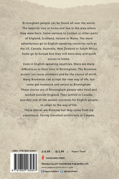 Birmingham people can be found all over the world. The majority stay at home and live in the area where they were born. Some venture to London or other parts of England, Scotland, Ireland or Wales. The more adventurous go to English-speaking countries such as the US, Canada, Australia, New Zealand or South Africa. Some go to Europe but they still have easy and quick access to home. Even in English-speaking countries, there are many differences to their lives in Birmingham. The Brummie accent can cause problems and be the source of mirth. Many Brummies can accept the new way of life, but some get homesick and return to Birmingham. These stories are of Birmingham people who lived and worked outside England. They settled in Canada, possibly one of the easiest countries for English people to adapt to the way of life. These stories are fictional but they come from my experience, having travelled extensively in Canada.