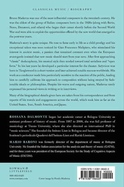 Bruno Maderna, one of the most influential composers in the 20th century and a formidable conductor, was the oldest of a notable group of Italian composers who began their careers shortly before the Second World War. Many details of this biography are based on his correspondences and reports of his engagements across the world.