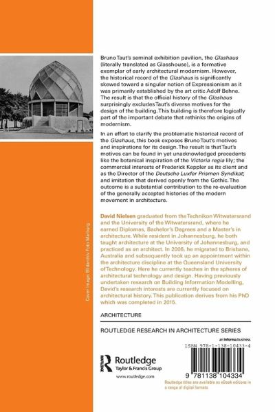 In an effort to clarify the problematic historical record of the Glashaus, this book exposes Bruno Taut's motives and inspirations for its design. The result is that Taut's motives can be found in yet unacknowledged precedents like the botanical inspiration of the Victoria regia lily; the commercial interests of Frederick Keppler as the Director of the Deutche Luxfer Prismen Syndikat; and imitation that derived openly from the Gothic. The outcome is a substantial contribution to the re-evaluation of the generally accepted histories of the modern movement in architecture.