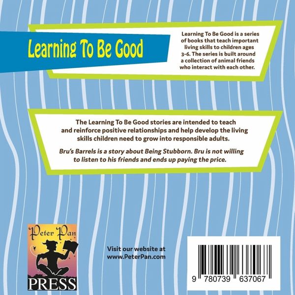 The Learning To Be Good stories are intended to teach and reinforce positive relationships and help develop the living skills children need to grow into responsible adults. Bru's Barrels is a story about Being Stubborn. Bru is not willing to listen to his friends and ends up paying the price.