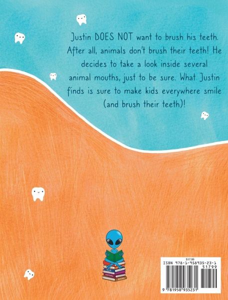 Justin does not want to brush his teeth. After all, animals don't brush their teeth! He decides to take a look inside several animal mouths, just to be sure. What Justin finds is sure to make kids everywhere smile (and brush their teeth)!