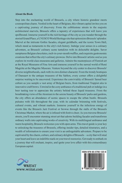 Step into the enchanting world of Brussels, a city where historic grandeur meets cosmopolitan charm. Nestled in the heart of Belgium, this vibrant capital invites you on a captivating journey of discovery. From the cobblestone streets to the majestic architectural marvels, Brussels offers a tapestry of experiences that will leave you spellbound. Immerse yourself in the rich heritage of the city as you wander through the storied Grand Place, a UNESCO World Heritage site that epitomizes Brussels' splendor. Marvel at the intricate Gothic facades, elegant guildhalls, and the iconic Town Hall, which stand as testaments to the city's rich history. Indulge your senses in a culinary adventure, as Brussels' culinary scene tantalizes with its delectable delights. Savor sumptuous Belgian chocolates, melt-in-your-mouth waffles, and exquisite gastronomic creations that reflect the city's culinary prowess. Delve into Brussels' artistic soul as you explore its world-class museums and galleries. Admire the masterpieces of Flemish art at the Royal Museums of Fine Arts and immerse yourself in the surreal world of René Magritte at the Magritte Museum. Venture beyond the city center to discover Brussels' diverse neighborhoods, each with its own distinct character. From the trendy boutiques of Dansaert to the antique treasures of the Sablon, every corner offers a delightful surprise waiting to be uncovered. Experience the conviviality of Brussels' famed beer culture as you sample a vast array of Belgian beers, from traditional Trappist ales to innovative craft brews. Unwind in the cozy ambiance of a traditional pub or indulge in a beer tasting tour to appreciate the artistry behind these liquid treasures. From the breathtaking views of the Atomium to the serene beauty of Brussels' parks and gardens, the city offers an abundance of scenic spaces to escape the urban bustle. Brussels pulsates with life throughout the year, with its calendar brimming with festivals, cultural events, and vibrant markets. Immerse yourself in the infectious energy of events like the Brussels Jazz Festival or browse through the stalls of the Brussels Christmas Market, where the air is infused with festive cheer. As you traverse Brussels' streets, you'll encounter stunning street art that adorns building facades and transforms ordinary walls into captivating works of creativity. With its multilingual ambiance and warm hospitality, Brussels welcomes you with open arms. This travel guide is your key to unlocking the treasures of Brussels, offering insider tips, detailed itineraries, and a wealth of information to ensure your visit is an unforgettable adventure. Prepare to be captivated by the charm, culture, and culinary delights of Brussels-a city that will steal your heart and leave an indelible mark on your travel memories. Get ready to embark on a journey that will enchant, inspire, and ignite your love affair with this extraordinary European capital.