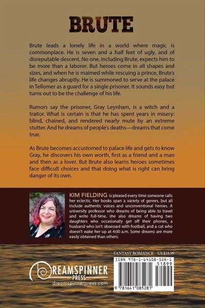 Brute leads a lonely life in a world where magic is commonplace. He is seven and a half feet of ugly, and of disreputable descent. No one, including Brute, expects him to be more than a laborer. But heroes come in all shapes and sizes, and when he is maimed while rescuing a prince, Brute's life changes abruptly. He is summoned to serve at the palace in Tellomer as a guard for a single prisoner. It sounds easy but turns out to be the challenge of his life. Rumors say the prisoner, Gray Leynham, is a witch and a traitor. What is certain is that he has spent years in misery: blind, chained, and rendered nearly mute by an extreme stutter. And he dreams of people's deaths--dreams that come true. As Brute becomes accustomed to palace life and gets to know Gray, he discovers his own worth, first as a friend and a man and then as a lover. But Brute also learns heroes sometimes face difficult choices and that doing what is right can bring danger of its own.