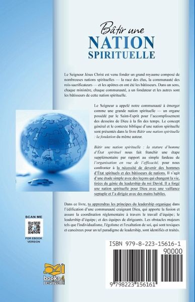 Le Seigneur Jésus-Christ est venu fonder un grand royaume composé de nombreuses nations spirituelles - la race des élus, la communauté des rois-sacrificateurs - et les apôtres en ont été les bâtisseurs. Dans un sens, chaque ministère, chaque communauté, a un fondateur et les autres sont les bâtisseurs de cette nation spirituelle. Le Seigneur a appelé notre communauté à émerger comme une grande nation spirituelle - un organe possédé par le Saint-Esprit pour l'accomplissement des desseins de Dieu à la fin des temps. Le concept général et le contexte biblique d'une nation spirituelle sont présentés dans le livre Bâtir une nation spirituelle : la fondation du même auteur. Bâtir une nation spirituelle : la stature d'homme d'État spirituel nous fait franchir une étape supplémentaire par rapport au simple fardeau de l'organisation en vue de l'efficacité, pour nous confronter à la nécessité de devenir des hommes d'État spirituels et des bâtisseurs de nations. Il s'agit d'une étude simple avec des leçons qui changent la vie, tirées du génie du leadership du roi David. Il a forgé une nation spirituelle pour Dieu avec une vaillance septuple et l'a dirigée avec des mains habiles. Dans ce livre, tu apprendras les principes du leadership organique dans l'édification d'une communauté craignant Dieu, qui apporte la fusion et assure la coordination réglementaire à travers le travail d'équipe¿; le leadership d'équipe¿; et des équipes de dirigeants. Les obstacles majeurs tels que l'individualisme, l'égoïsme et l'exaltation de soi, qui sont toxiques et cancéreux pour un tel paradigme de leadership, sont identifiés et traités.