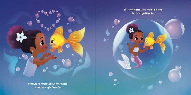 From singer, actress, and dancer Vanessa Williams comes a sweet, sparkling story about a young girl whose beloved pet fish has wonderful, magical powers. She gives me bubble kisses, bubble kisses as she swims by in the water. She never misses with her bubble kisses. And I'm so glad I got her. A young girl adores her goldfish, Sal. But Sal is no ordinary pet: while she can't fetch a ball or curl up on a lap, she can give bubble kisses that transform the girl into a mermaid and transport her to a world of underwater adventures. There, beneath the sea, they play, sing, and dance with other…mehr