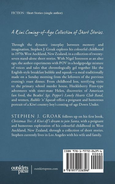 Through the dynamic interplay between memory and imagination, Stephen J. Groak explores his colorful childhood in 1970s West Auckland, New Zealand, in a collection of twenty-seven stand-alone short stories. With Nigel Sorenson as an alter ego, Groak experiments with POV in a hodgepodge of voices and tales that gel like the English-style breakfast bubble and squeak-a meal traditionally made on a Sunday morning from the leftovers of the previous evening's roast dinner. From childhood loss, terrifying visits to the primary school murder house, and Huckleberry Finn-type adventures with sister-mate Helen to discoveries of American fast food, the Beatles' Sgt. Pepper's Lonely Hearts Club Band, and women, Bubble 'n' Squeak: A Collection of Short Storiesoffers teenage and adult readers a poignant and humorous portrait of a Kiwi country boy's coming-of-age Down Under.