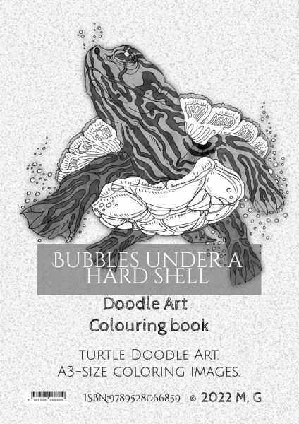 Bubbles under a hard shellDoodle Art colouring bookFreehand turtle Doodle Art.A3-size coloring images.